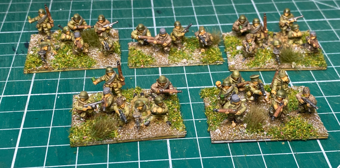 Also included are 2 45mm AT guns & crews, 1 AT rifle, 1 Light mortar & crew, 2 Medium machineguns and crews and 2 Medium mortars and crews. Totalling 109 figures.